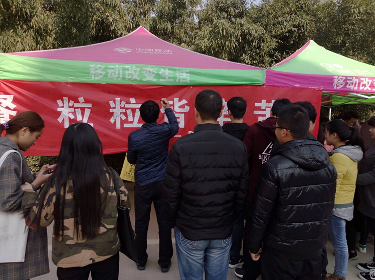 活动前期,院学生会维权部也通过发放宣传页、空间发表说说、利用河职贴吧等对本活动进行宣传。活动期间工作人员除了设置条幅鼓励同学们签名之外,还展出了一些文明就餐、光盘行动的宣传标语。发现浪费粮食、不放回餐盘、打饭插队等不文明行为立即进行劝解和制止。通过工作人员的广泛宣传和有效监督,文明就餐取得显著的效果。