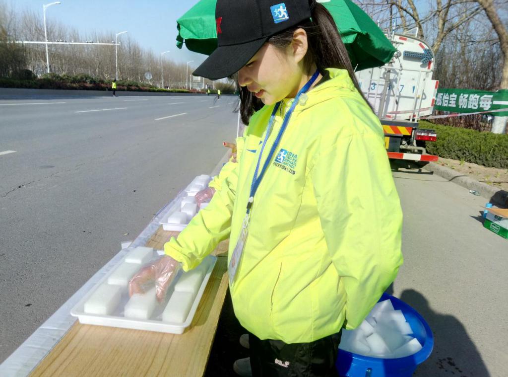 比赛当日,50名志愿者星夜启程,早上8点整,志愿者按组委会要求就位,并在岗位上坚守一上午,直至所负责区域无运动员经过。在水站处,看到满头大汗的运动员拿起我们准备好的水饮用,对我们说“谢谢”,当时内心无比的激动,我们的付出得到了最好的回报,也祝愿他们都能取得好的成绩。