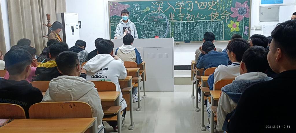 在各班团支书的带领下,团支部成员重温了党史学习教育动员大会上习近平总书记的重要讲话精神,回顾了“四史”的主要内容,更加明白了学习“四史”的重要性。随后,各班团支部成员观看了党的发展历史、党员榜样人物等视频,通过身边典型事教育身边人,使红色基因印在脑海、融入血脉,引导团员青年争做红色基因的传承者。
