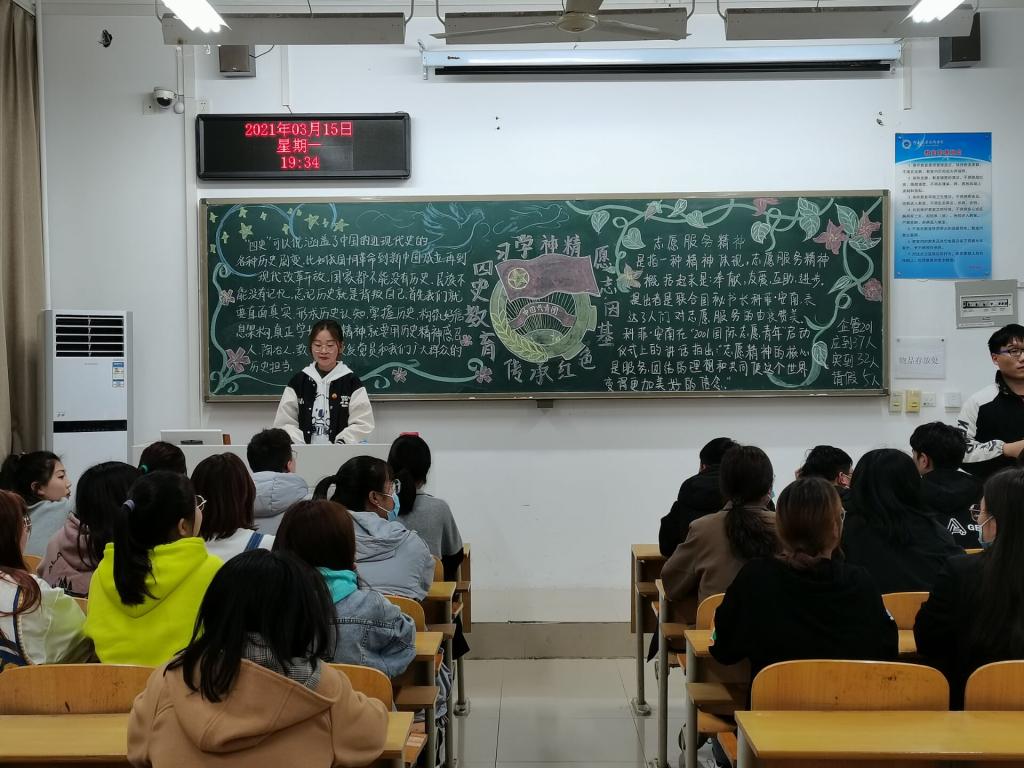 为进一步贯彻落实全国高校“四史”学习教育的工作要求,切实强化学生思想政治教育实效,3月15日至3月26日,我校组织大一全体学生,以各团支部为单位开展“学习四史教育 传承红色基因 弘扬志愿精神”主题团课活动。
