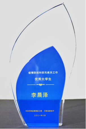 疫情防控和防汛救灾工作优秀大学生奖杯及证书