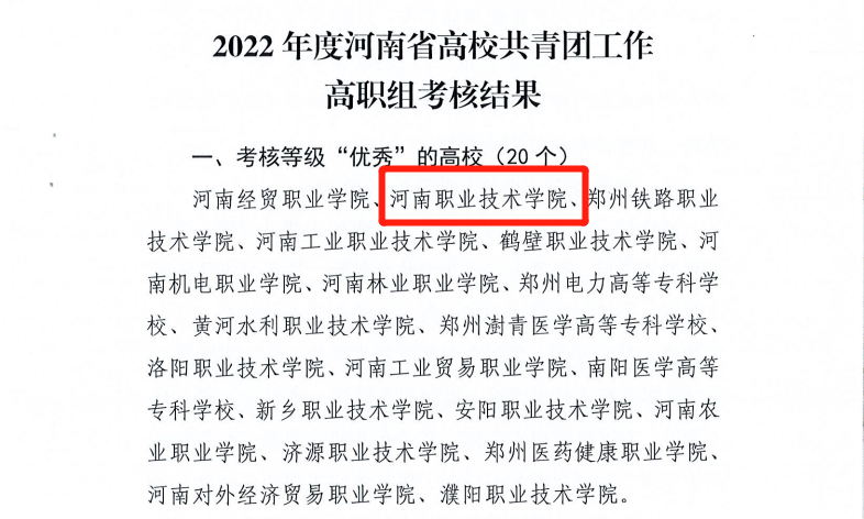 近日,共青团河南省委下发了《关于2022年度河南省高校共青团工作考核结果的通报》,文件公布了全省各高校团委2022年度综合考评结果,我校团委荣获“优秀”等级!