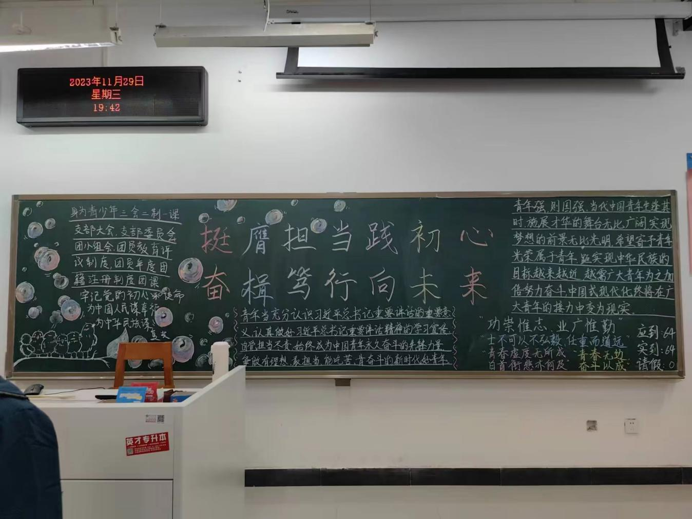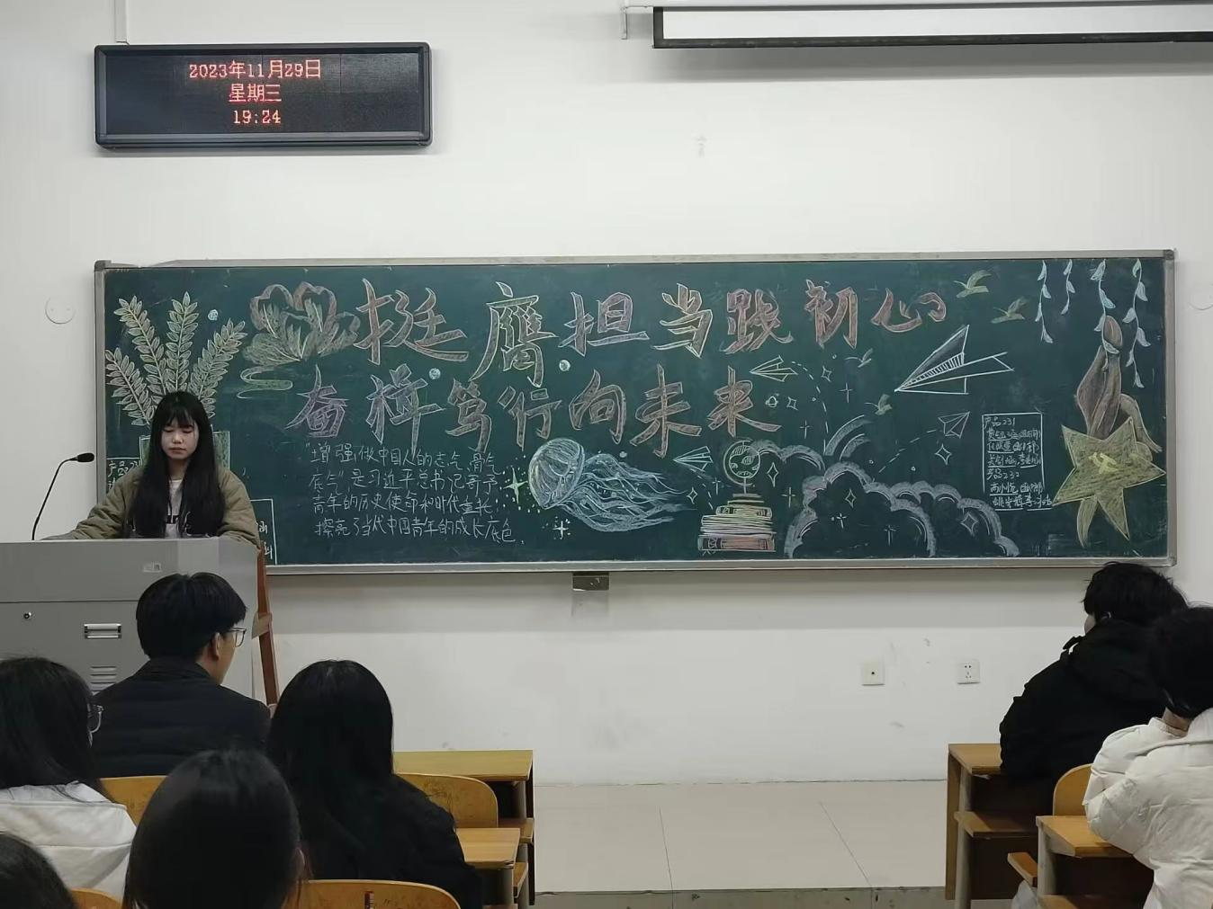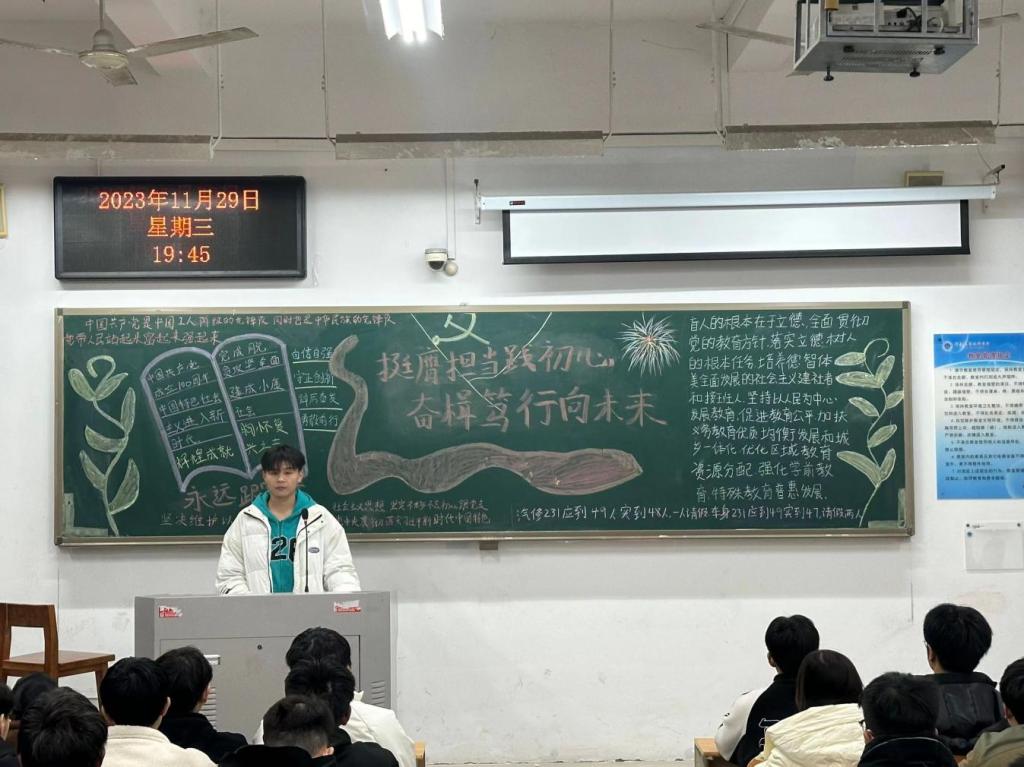 为引导广大团员青年坚定理想信念、勇担青春使命,11月27日至12月8日,我校以各班团支部为单位开展了“挺膺担当践初心,奋楫笃行向未来”主题团课。