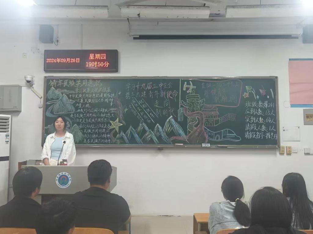 在本次团课中,各班团支书首先领学了蔡奇在中国共产主义青年团第十九次全国代表大会上的致词,不断深化学校广大团员青年对“两个确立”的政治认同、思想认同、理论认同、情感认同,而后组织广大团员青年观看了中国共产主义青年团第十九届中央委员会第三次全体会议的视频,并展开了深入讨论,将广大团员青年带入了当时的情境和氛围中,让同学们更加深刻地理解新时代青年的责任与使命,更加坚定为实现中华民族伟大复兴的中国梦贡献青春力量的决心和信心。