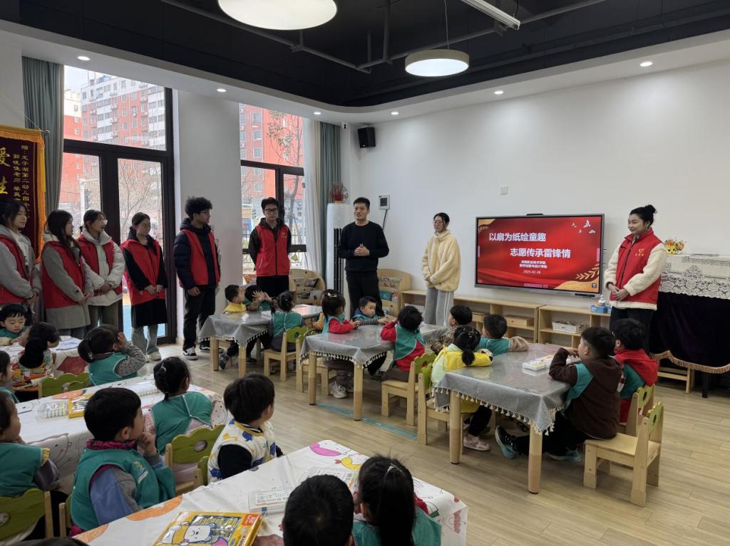 3月5日下午,数字创意与设计学院的青年志愿者走进郑东新区龙子湖第二幼儿园,开展了一场别开生面的“以扇为纸绘童趣,志愿传承雷锋情”志愿活动。