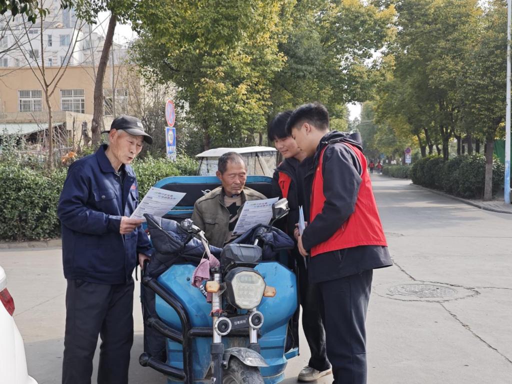 本次活动聚焦“车辆美容保养”与“安全知识普及”两大主题。活动现场,志愿者们因地制宜,搭建起临时服务站点,身穿统一的志愿者服装,手持洗车工具,通过义务洗车、免费添加玻璃水等便民服务,用实际行动续写雷锋故事。此外,志愿者们还精心准备了一系列图文并茂的宣传册,内容涵盖了防诈知识和交通安全知识等多个方面。他们三两一组,穿梭在社区居民之间,热情地向大家发放宣传册,并结合当下常见的诈骗案例,深入浅出地为居民们讲解防诈要点。特别针对老年群体开展一对一防诈提醒,帮助他们提高警惕,谨防诈骗,筑牢安全防线。同时,志愿者们还结合专业知识,通过发生在身边的真实案例,生动形象地讲解了交通安全的重要性,引导居民自觉遵守交通规则,共同营造安全、和谐的交通环境。