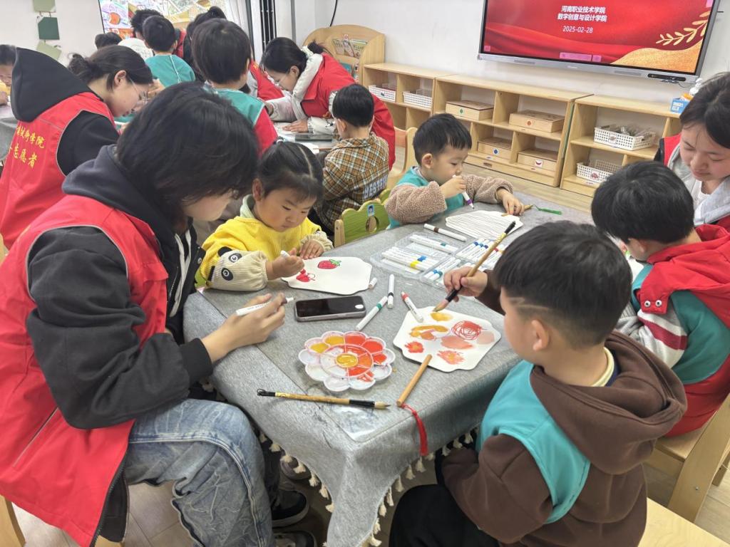 活动当天,志愿者们早早抵达幼儿园,精心准备了画材与工具,为小朋友们耐心讲解团扇的历史文化,让他们对这一传统物件有了初步认识。在绘画环节,志愿者们与小朋友两人一组,手把手教他们如何构图、调色、上色。小朋友们兴致勃勃,发挥天马行空的想象力,在团扇上绘出五彩斑斓的图案,有可爱的小动物、鲜艳的花朵、梦幻的城堡,每一把团扇都承载着孩子们纯真的童趣。