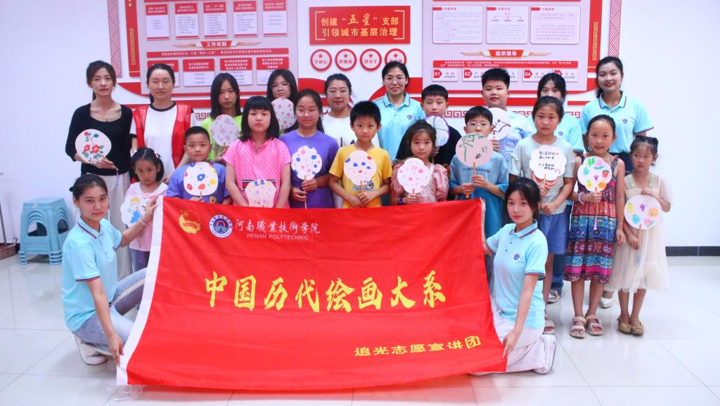 活动期间,“追光”宣讲团以“赓续‘大系’文脉,传递经典新声”为主题,赴郑东新区贾鲁街社区、东尚社区、禹州神垕古镇、郑州市桐柏一中及通泰路小学等地开展志愿宣讲活动,采用艺术公开课、主题绘画、手工制作等形式,开展了“手握团扇绘童年 妙笔生花映童心”“走进传统插花世界”“书香阅读”“走进千年古镇 探寻钧瓷文化”“非遗版画体验”等各类活动,内容涵盖中国古代山水画、花鸟画、中国绘画中的历史景象及历代名画鉴赏等多个方面。
