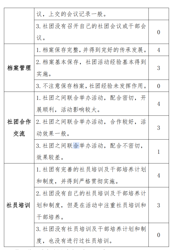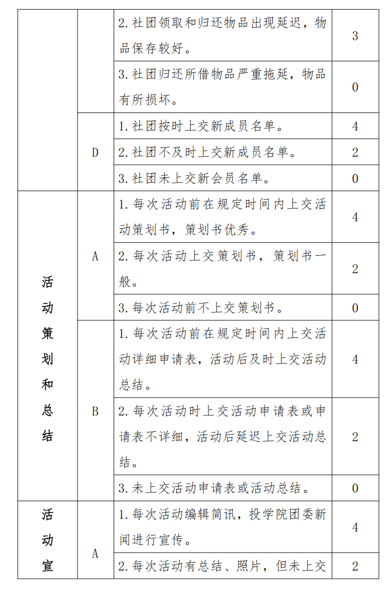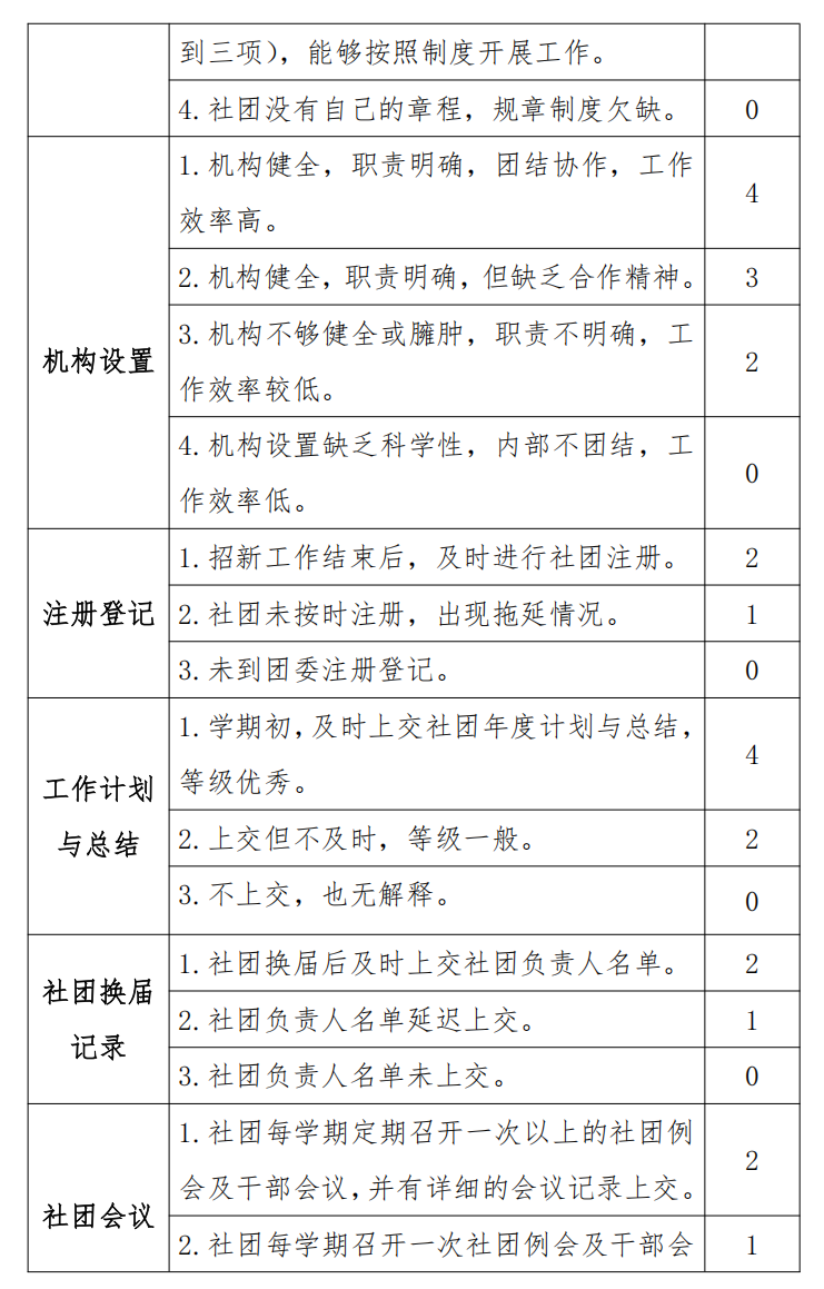 生社团,70 分—80 分者可评为三星级学生社团,60—70 分为二