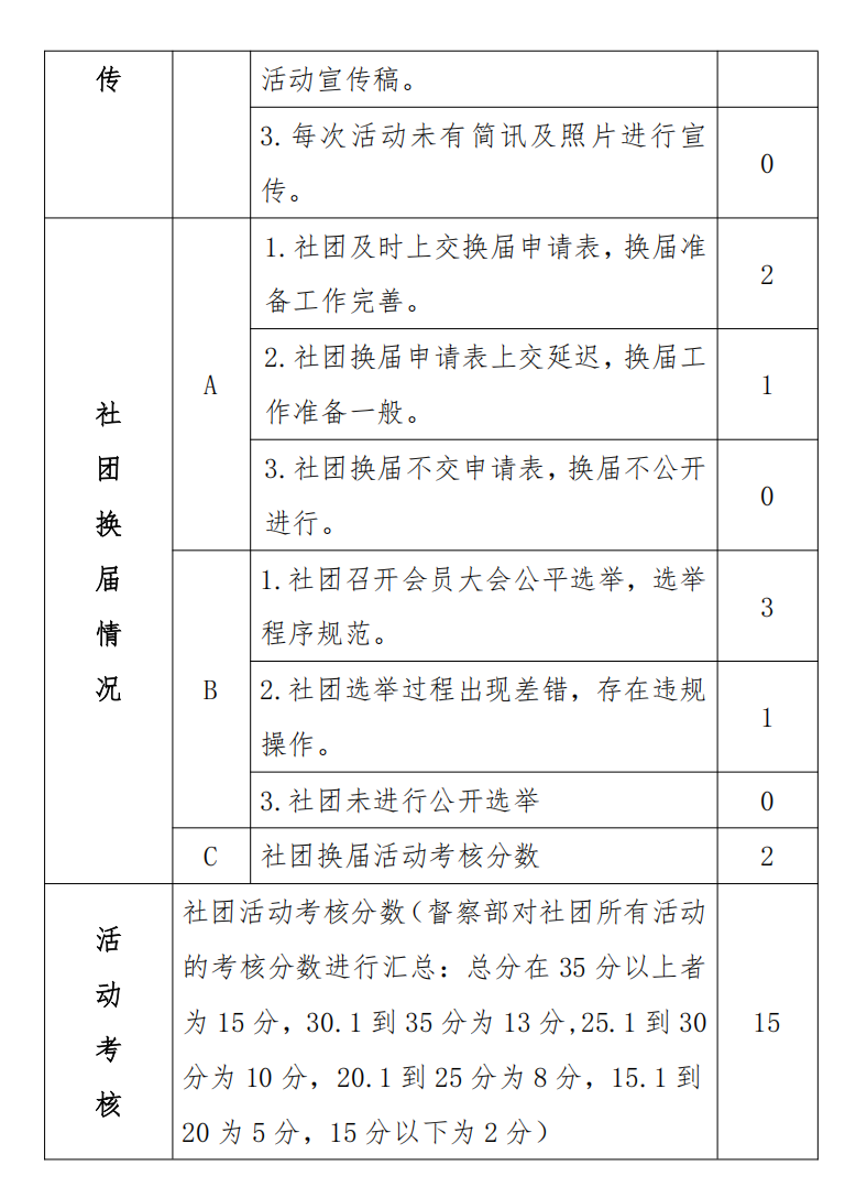 3.督察部对社团每次活动的考核情况。