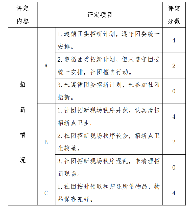 2.招新活动中表现突出,宣传到位,效果明显加 2 分;