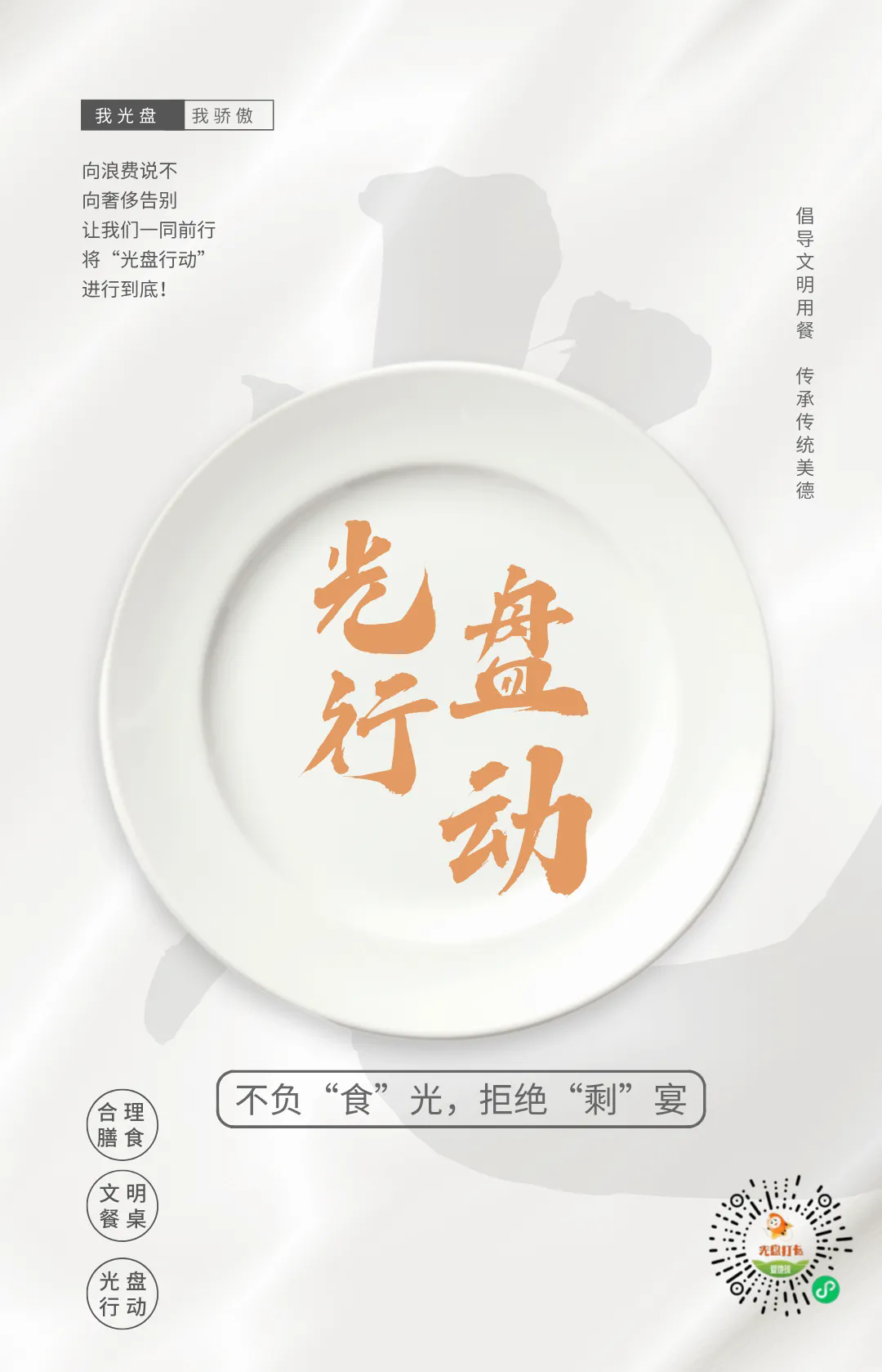 由校团委和后勤管理处联合主办,校学生会承办的主题为“不负‘食’光,拒绝‘剩’宴”光盘行动即将开始!一起参与到光盘行动中来吧!