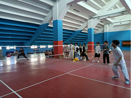 此次比赛采用小组循环与淘汰赛相结合的创新赛制,保证每位同学至少参与两轮对抗。赛前,体育委员带领大家进行动态拉伸,为比赛安全提供保障。赛中特别设置的“混双趣味赛”“高远球挑战”等互动环节,让更多同学感受到运动的快乐。