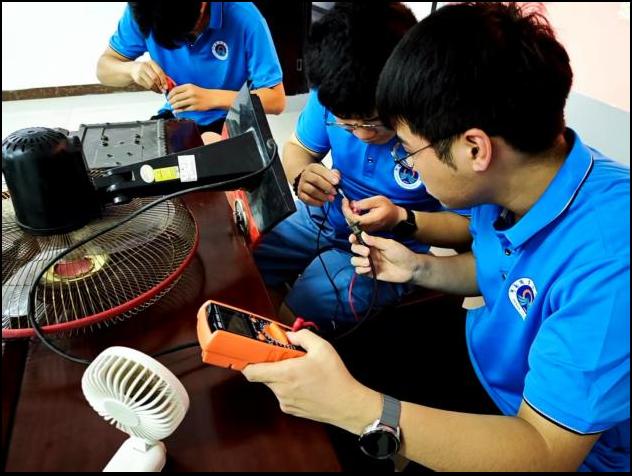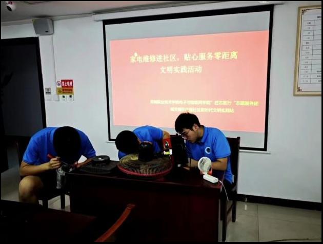 当天下午,志愿服务团从周庄村返程后随即前往睢县城关镇生产路社区幸福花园小区党群服务中心,持续开展家电义务维修活动。同学们延续上午的专业热情,为社区居民检修各类小家电,用技术服务切实解决居民生活难题。