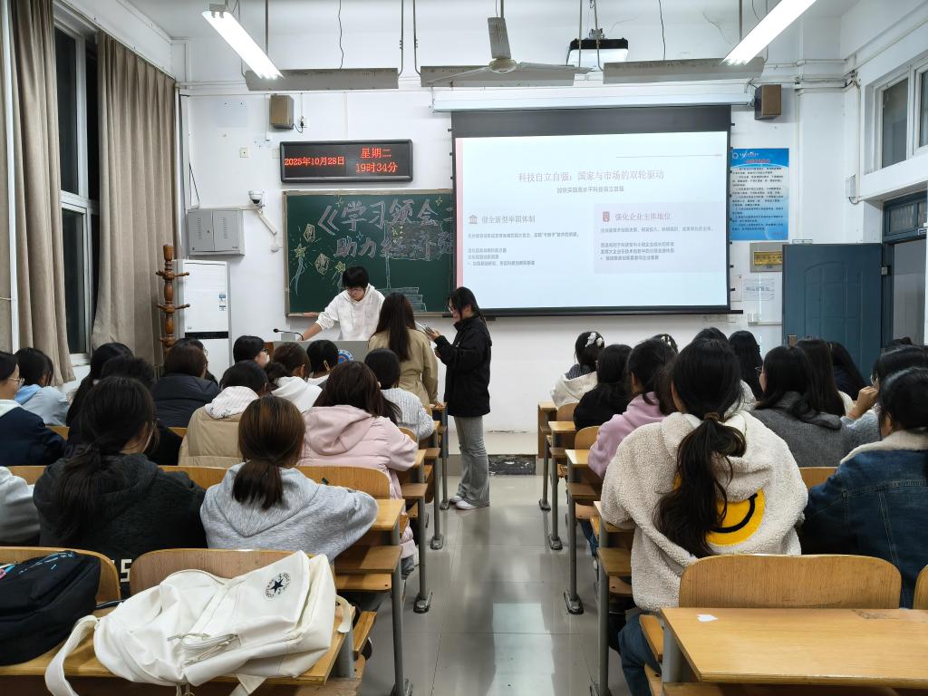 活动中,各班团支书通过领学党的二十届四中全会公报、《人民日报》系列评论员文章等权威材料,圈划重点、梳理框架,重点围绕党的二十届四中全会作出的一系列重大决策部署、“十四五”时期我国发展取得的重大成就和“十五五”时期经济社会发展的主要目标、原则等关键内容展开深入学习探讨。团干部带头领学,团员青年踊跃发言,现场学习氛围浓厚热烈。大家一致认为,党的二十届四中全会擘画了国家发展的新蓝图,为青年一代施展才华、建功立业提供了广阔舞台和明确方向。