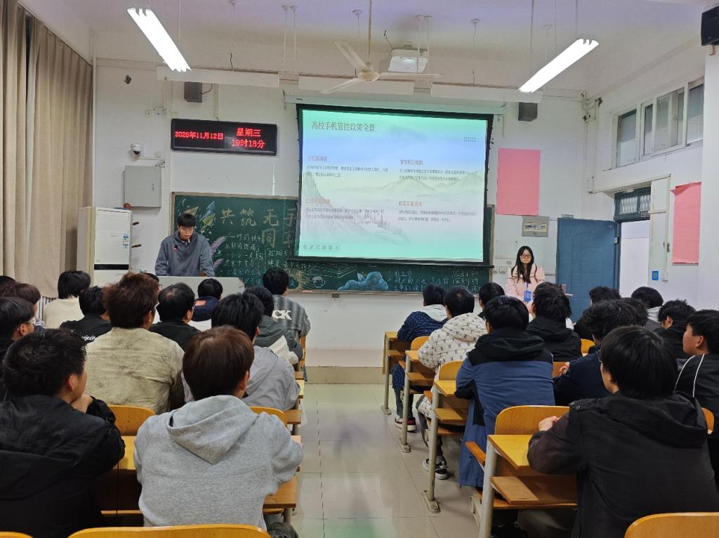 在学习环节中,各班团支书首先通过展示科学数据分析结果,让同学们直观感受课堂上使用手机对学习效率的影响,呼吁大家自觉遵守课堂纪律;其次用鲜明案例使同学们深入了解烟草危害身心健康,远离烟草诱惑,共同守护专注高效的学习环境与清新健康的校园生态;最后以习近平总书记重要回信精神为核心,通过视频学习,让同学们深刻领会“将小我融入大我”的时代内涵,扎根边疆献青春。在互动环节中,同学们纷纷表示会主动践行“课堂无手机、校园无烟”的行为准则,用专注态度夯实学业基础、用健康习惯滋养成长之路;也会以习近平总书记嘱托为动力,把个人理想融入国家发展大局,在艰苦奋斗中增长才干,在服务奉献中实现价值。