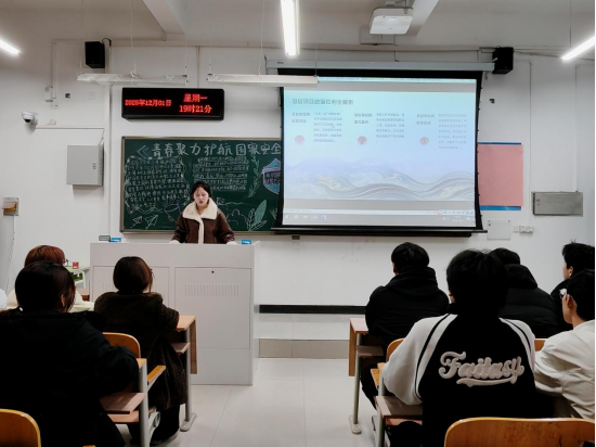 团课伊始,各班团支书围绕总体国家安全观的核心要义和丰富内涵,结合当前国际国内形势,系统讲解了政治安全、经济安全、网络安全、数据安全等重点领域的安全知识。引导同学们认识到专业学习与国家安全的紧密联系,树立“专业报国、安全有我”的责任意识。在分享交流环节中,同学们纷纷表示,要把国家安全意识融入日常学习生活,自觉遵守国家安全法律法规,主动防范各类安全风险,以青春之力护航国家安全,用实际行动谱写新时代青年的责任与担当。